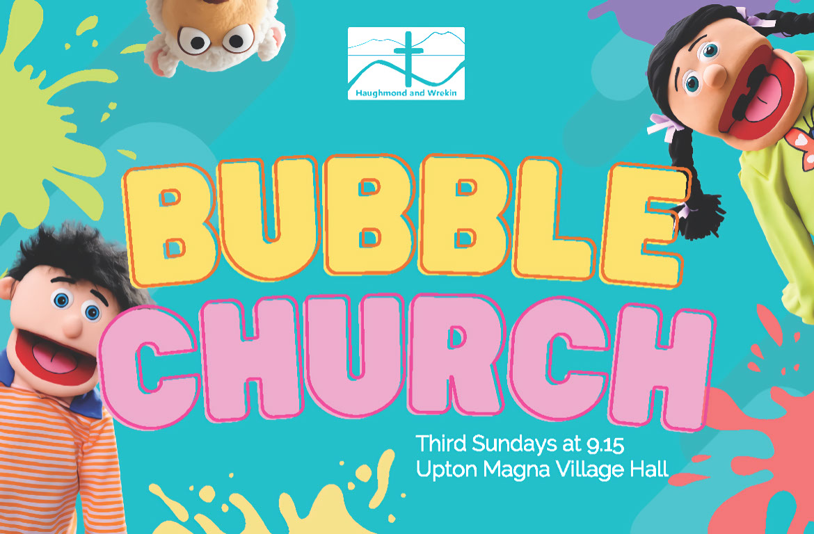 Bubble Church at Upton Magna Village Hall is on the third Sunday in each month at 9.15am.